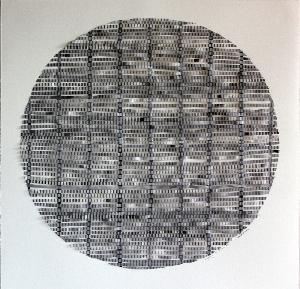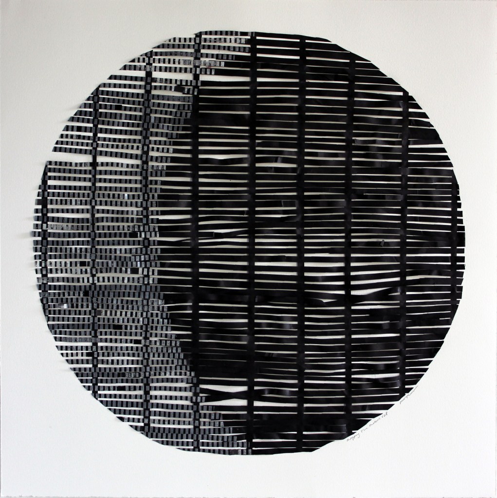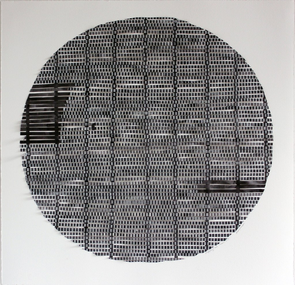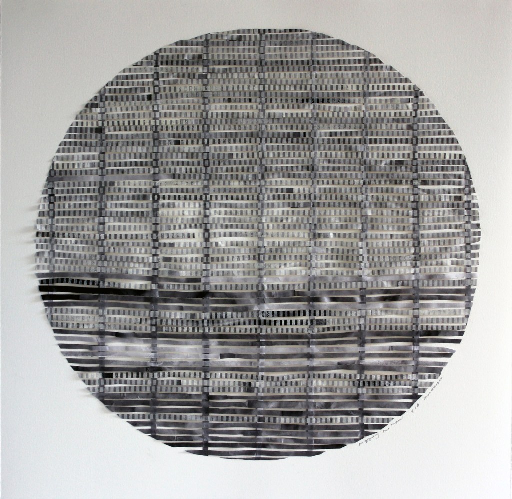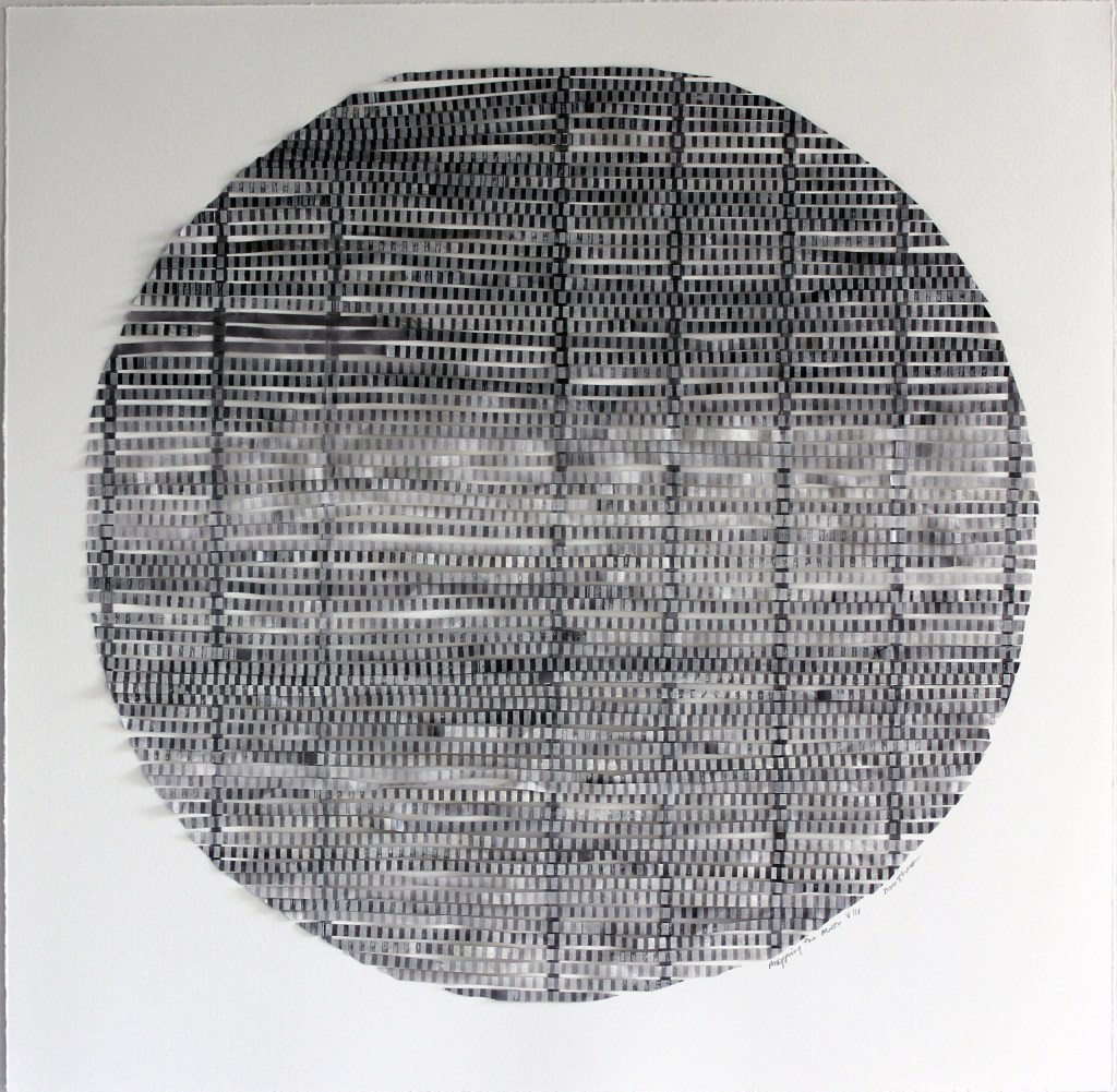 Mapping the moon series is a cartographic process in a series of collaged prints. As it cycles through 29 phases, different mappings take place, temporally capturing the glitches, skipping and stretching of knowledge, sometimes filling in gaps in the ways we figure out knowings. This work developed in an Australian Tapestry Workshop Artist in Residency project in 2015.